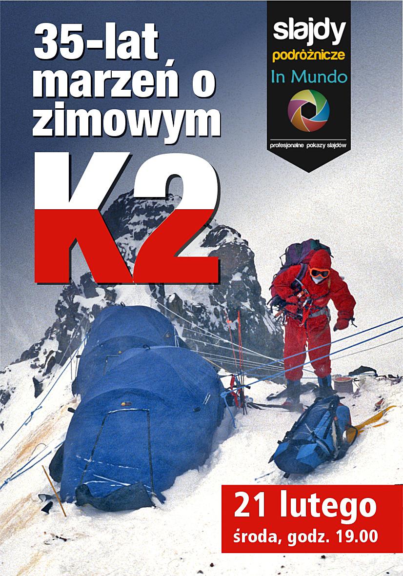Zapraszamy na spotkanie odsłaniające kulisy polskich zmagań z zimowym K2. Zdobycie K2 zimą to jedno z największych wyzwań współczesnego himalaizmu sportowego. To walka ze śmiertelnym zimnem, huraganowym wiatrem, nawałnicami śnieżnymi, odmrożeniami i skrajnym wyczerpaniem. K2 zawsze fascynowało Andrzeja Zawadę. Ten szczyt był w pewnym sensie jego obsesją. Po sukcesach zespołów z innych państw letnie wejścia przestały go interesować. Wymyślił wtedy zimę na K2. Drogą dyplomatyczną w 1982 r. uzyskał pozwolenie Pakistanu na rekonesans. Międzynarodowa wyprawa kierowana przez Andrzeja Zawadę wyruszyła w 1987 r. i trwała prawie 7 miesięcy. 700 tragarzy, 33 członków załogi, 15 wspinaczy. Próbują zdobyć wierzchołek od strony pakistańskiej, drogą Abbruzzi. Osiągają wysokość 7100 m. W sezonie 2002/2003 wyrusza na szczyt od strony chińskiej wyprawa kierowana przez Krzysztofa Wielickiego, filarem północnym Netia K2 Expedition. Osiągają wysokość 7600 m. 29 grudnia 2017 r. wyrusza Narodowa Zimowa Wyprawa na K2 2017-2018. Podczas spotkania Jerzy Natkański (Fundacja Kukuczki) przybliży historię programu „Polski Himalaizm Zimowy 2010 - 2020” oraz usłyszymy od Janusza Majera – szefa PHZ – co aktualnie dzieje się na Narodowej Zimowej Wyprawie na K2 2017-2018. Spotkanie połączone będzie z promocją książki „K2 pierwsza zimowa wyprawa” Andrzeja Zawady. Jest to relacja z przygotowań i przebiegu pionierskiej wyprawy sprzed 30 lat. Zawiera osobiste listy Andrzeja Zawady, raporty, myśli i zapiski legendarnego Lidera, 22 unikalne dokumenty, 94 kolorowe, archiwalne, w większości nie publikowane, zdjęcia.