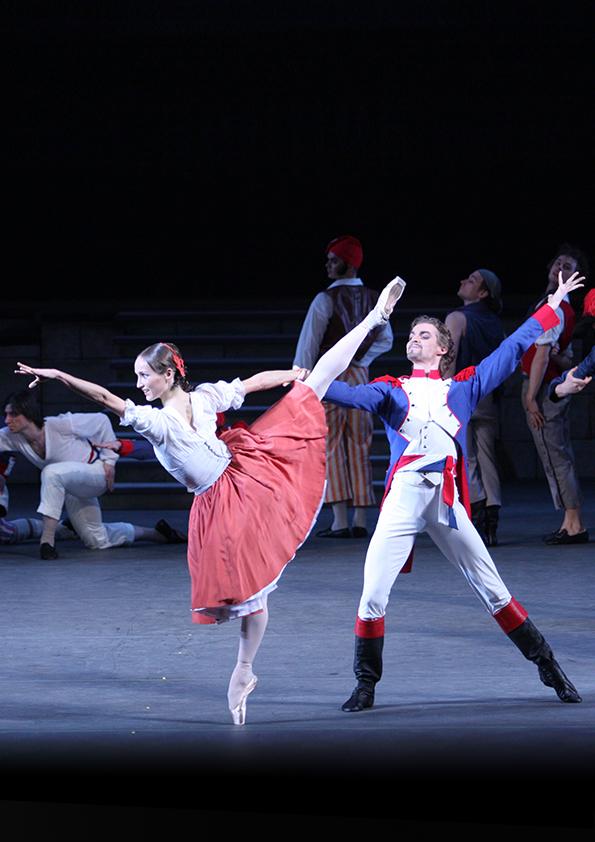 Dziś dzieło Asafiewa i Wajnonena cenimy nie za to, że był to pierwszy balet sowiecki, który choć opowiadał o Rewolucji Francuskiej, miał nawiązywać do Rewolucji Październikowej, ale za mistrzowską dramaturgię, pełne wyrazu sceny zbiorowe i ekwilibrystyczne popisy taneczne. Nie musimy pamiętać, że balet został nawet uhonorowany Nagrodą Stalinowską… Historia miłości człowieka z ludu, Jerome’a do arystokratki Adeline jest pretekstem do pokazania dwóch skontrastowanych światów i pełnych rozmachu scen z arystokratycznego dworu i zbuntowanej ulicy. Balet do scenicznego życia przywrócił Aleksiej Ratmański, trochę łagodząc sowiecki wydźwięk dzieła, za to wykorzystując całą choreograficzną spuściznę pierwszego choreografa „Płomienia Paryża” – Wasilija Wajnonena. Dech zapiera szczególnie popisowe pas de deux pary głównych bohaterów, z upodobaniem wykonywane także na galach i konkursach baletowych, wymaga bowiem do tancerzy wyjątkowych umiejętności. Obsada: Pierwsi tancerze, soliści, koryfeje i zespół baletowy i orkiestra Teatru Bolszoj