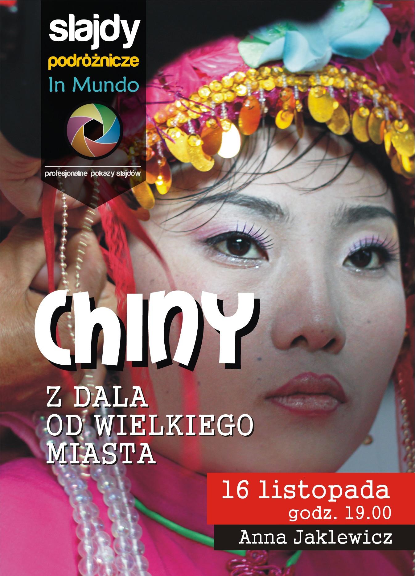 Pierwsza wizyta w Chinach może zniechęcić do powrotu do Państwa Środka. Męczą gigantyczne miasta, przerażają miliony osób na ulicach i smog unoszący się w powietrzu. Mimo to warto dać Chinom drugą szansę. O tym dlaczego, opowie Anna Jaklewicz, podróżniczka i autorka książki ‘Niebo w kolorze indygo. Chiny z dala od wielkiego miasta”.Pokaz Anny Jaklewicz to relacja z samotnej czteromiesięcznej podróży po wioskach zagubionych wśród ryżowych pól na południu Chin. Podczas prezentacji poznamy bogactwo kulturowe i etniczne Państwa Środka – weźmiemy udział w weselu mniejszości narodowej Bai i muzycznym święcie gry na bambusowych fletach we wiosce Dongów, odwiedzimy „królestwo kobiet” nad jeziorem Lugu zamieszkałe przez matriarchalnych Mosuo, spędzimy noc w okrągłych domach – fortecach ludności Hakka, przyjrzymy się fascynującym strojom kobiet z mniejszości Miao i dowiemy jak wytwarza się barwnik indygo. Anna Jaklewicz – podróżniczka i archeolożka. Autorka książek Indonezja. Po drugiej stronie raju i Niebo w kolorze indygo. Chiny z dala od wielkiego miasta. Relacje z podróży publikuje m.in. w National Geographic TRAVELER i Magazynie Podróżników TamTam. Organizatorka wypraw do Azji i pilot wyjazdów trampingowych. Prowadzi zajęcia międzykulturowe dla młodzieży oraz warsztaty dla dzieci.Nie liczy stempli w paszporcie, zazwyczaj wyjeżdża na dłużej. W Sudanie spędziła ponad pół roku, w Egipcie rok, w Chinach prawie dwa lata, tle samo w Indonezji. Podróżowała także po Mongolii, Indiach, Laosie, Kambodży, Tajlandii, Wietnamie oraz Malezji i Singapurze.Wielokrotnie wyróżniana za prelekcje poświęcone wyprawom. Jej pokaz o Indonezji zdobył nagrodę publiczności na Kolosach – największym festiwalu podróżniczym w Europie oraz nagrodę jury Festiwalu 100droga. Prezentacja o Chinach zwyciężyła w konkursie OFF na festiwalu Trzy Żywioły.Za samotną, dziewięciomiesięczną podróż po Indonezji podczas której powstawała jej najnowsza książka, została nominowana przez National Geographic do nagrody TRAVELERY w kategorii Podróż Roku.www.annajaklewicz.pl