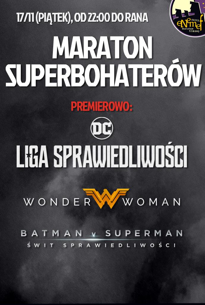 ENEMEF: Maraton Superbohaterów z premierą "Ligi Sprawiedliwości" to emocjonujące spotkanie z najsłynniejszymi superbohaterami DC Comics! Tej nocy pojawią się m.in. Batman, Superman, Wonder Woman, Flash, Aquaman oraz Cyborg i zapewnią widzom doskonałą rozrywkę za sprawą świetnych historii, dynamicznej akcji i rewelacyjnych efektów specjalnych.