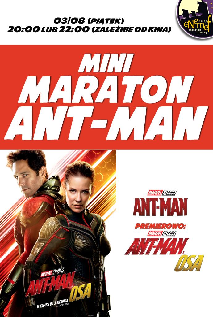 ENEMEF: Minimaraton Ant-Man to szalony wieczór u boku najprawdopodobniej najmniejszego superbohatera w historii! Mały, ale wariat... A do tego nieustraszony, skuteczny i przezabawny. Poznaj jego genezę oraz najnowsze losy oglądając dwie części serii, w tym najnowszą "Ant-Man i Osa" w dniu premiery! Ten seans to doskonała rozrywka nie tylko dla fanów Marvela.
