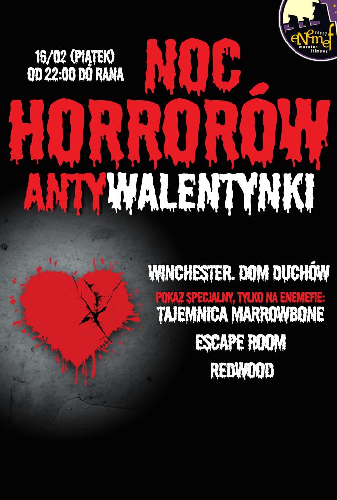 ENEMEF: Noc Horrorów - Antywalentynki to już coroczna tradycja fanów mrocznej strony kina. Tuż po przepełnionych różem, słodkościami i filmami o miłości Walentynkach w kinie spotkają się fani mocnych wrażeń, aby przez całą noc celebrować swoje święto - Antywalentynki!