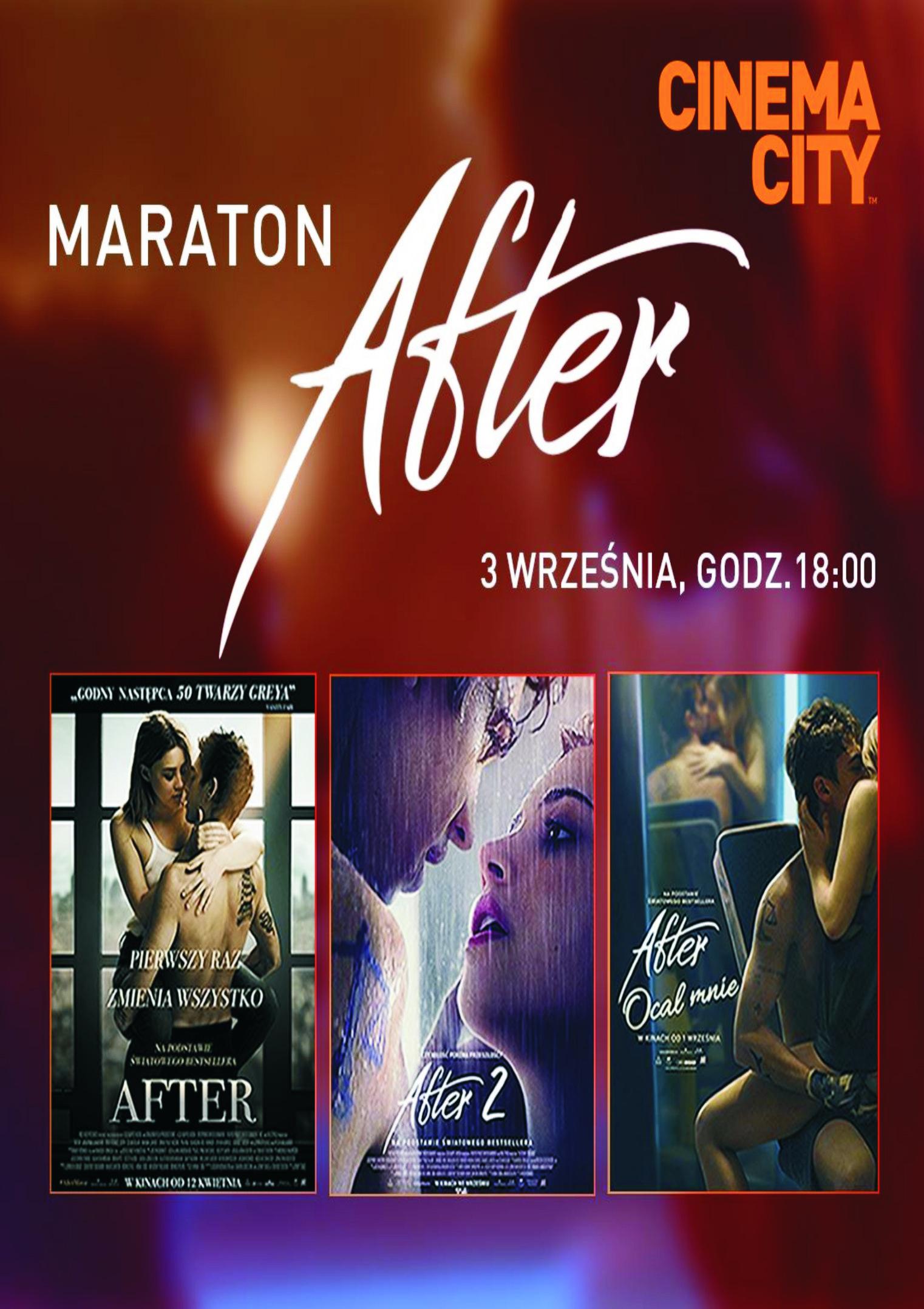 W trakcie maratonu widzowie obejrzą 3 części uwielbianej sagi After, w tym premierowo najnowszą: After. Ocal Mnie. Będzie to kontynuacja miłosnych zawirowań Hardina i Tessy. Tym razem Tessa staje przed najtrudniejszą decyzją w życiu. Właśnie, gdy jej związek z Hardinem rozkwita na nowo, dziewczyna otrzymuje propozycję, która może otworzyć przed nią drzwi do wielkiej kariery. Warunkiem jest przeprowadzka na drugi koniec kraju. Hardin jest temu przeciwny, ale Tessa wie, że taka szansa może się nie powtórzyć. Jej decyzja o wyjeździe to cios dla ich uczucia. Szczególnie, że oboje mierzą się z szokującymi rodzinnymi tajemnicami, które stawiają pod znakiem zapytania wszystko, w co dotąd wierzyli. Gdy Hardin szaleje z zazdrości, Tessa znajduje oparcie w przystojnym nowym przyjacielu. Czy to na pewno tylko przyjaźń?