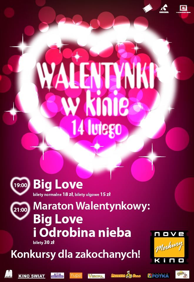 Big Love Młoda dziewczyna (Aleksandra Hamkało) poznaje starszego chłopaka (Antoni Pawlicki). On pokazuje jej świat, jakiego nie znała. Ona zaczyna odkrywać siebie i stopniowo oddala się od ukochanego. Przestaje być pięknie - zaczyna być niebezpiecznie... Odrobina nieba Jedna z najbardziej pożądanych aktorek Hollywood – Kate Hudson – wciela się w beztroską singielkę Marley, która po serii przelotnych romansów poznaje wreszcie mężczyznę swoich marzeń, przystojnego doktora Juliana – w tej roli główny konkurent Antonio Banderasa do miana latynoskiego amanta wszech czasów – Gael Garcia Bernal. Pech sprawi, że to właśnie z jego ust Marley dowie się, że jej życie zawisło na włosku... Czy uczucie okaże się silniejsze od przeszkód, stawianych przez kapryśny los? Znakomitą obsadę komedii, na której nawet najbardziej niewzruszony widz wielokrotnie sięgnie po chusteczkę, uzupełniają wyróżnione nagrodami Amerykańskiej Akademii Filmowej wybitne aktorki komediowe Kathy Bates i Whoopi Goldberg.