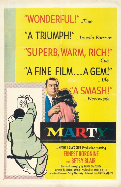 Marty (Ernest Borgnine) to niezbyt urodziwy 34-latek pracujący w sklepie rzeźnickim. Pomimo, że obdarzony jest wielkim uczuciem ze strony owdowiałej matki (Esther Minciotti) oraz posiada grono przyjaciół, z którymi spędza wieczory, czuje się samotny i przytłoczony swoimi kompleksami. Bliscy nieustannie sugerują, że najwyższa pora zacząć myśleć o małżeństwie. Jednak Marty wciąż nie może spotkać swojej wymarzonej kandydatki. Na jednej z potańcówek poznaje równie nieśmiałą, skromną i niczym się nie wyróżniającą nauczycielkę Clarę Snyder (Betsy Blair).