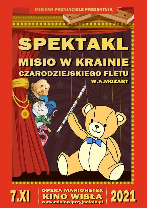 Misiowi Przyjaciele zapraszamy spektakl Misiowej Opery w Kufrze - najmniejszej i najbardziej puchatej opery świata: "Misio w krainie czarodziejskiego fletu" to wyjątkowy spektakl marionetkowy w którym główną role zagrają Misiowi Przyjaciele i różne zwierzątka. Nie nużący dzieci multimedialny spektakl trwa tylko 30 minut, po którym zapraszamy do twórczej muzycznej zabawy. Na premierę zapraszamy z ulubionymi maskotkami.