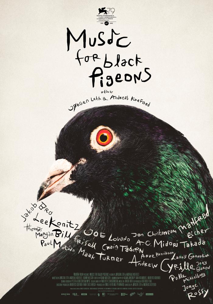 „Muzyka dla czarnych gołębi” jest manifestem miłości dla aktu tworzenia muzyki. Twórcy filmu przez 14 lat podążają za jednymi z najbardziej twórczych, uznanych, ale i ekscentrycznych artystów jazzowych. Wśród nich są Jacob Bro, Bill Frisell, Paul Motian, Lee Konitz, Joey Baron czy Midori Takada. Podróżują z nimi, podglądają ich w mieszkaniach, obserwują sesje nagraniowe i proces twórczy. Szukają intymnych momentów, w których powstaje muzyka i nawiązują się więzi. Wybitnym artystom trudno jest mówić o swojej muzyce. Ciężko opisać coś mitycznego, intuicyjnego, przekraczającego słowa. Cos, co przetrwa ich samych. Nie przeszkadza to jednak filmowcom. Zaskakujące sesje muzyczne aranżowane ad hoc przeplatają się w filmie z pełnymi emocji monologami artystów. Legendarny założyciel wytworni ECM, Manfred Eichler, wypowiada się w filmie na temat roli pauzy w muzyce. Tłumaczy, w jaki sposób określa ona sens utworu, jego kontekst i źródła powstania.