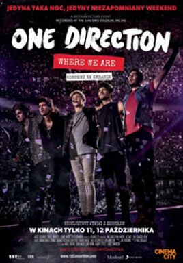 Najpopularniejszy zespół na świecie, globalna pop gwiazda - zespół One Direction, zaprasza do kin na światowa premierę filmu ONE DIRECTION: WHERE WE ARE. Dołącz do chłopaków z One Direction i zobacz niezwykły koncert grupy nagrany na słynnym stadionie San Siro w Mediolanie. Oszałamiający koncert, największe hity grupy, ale również nigdy wcześniej nie publikowane wywiady i zapiski zza kulis, wywiady i sekrety trasy „Where We Are 2014”
