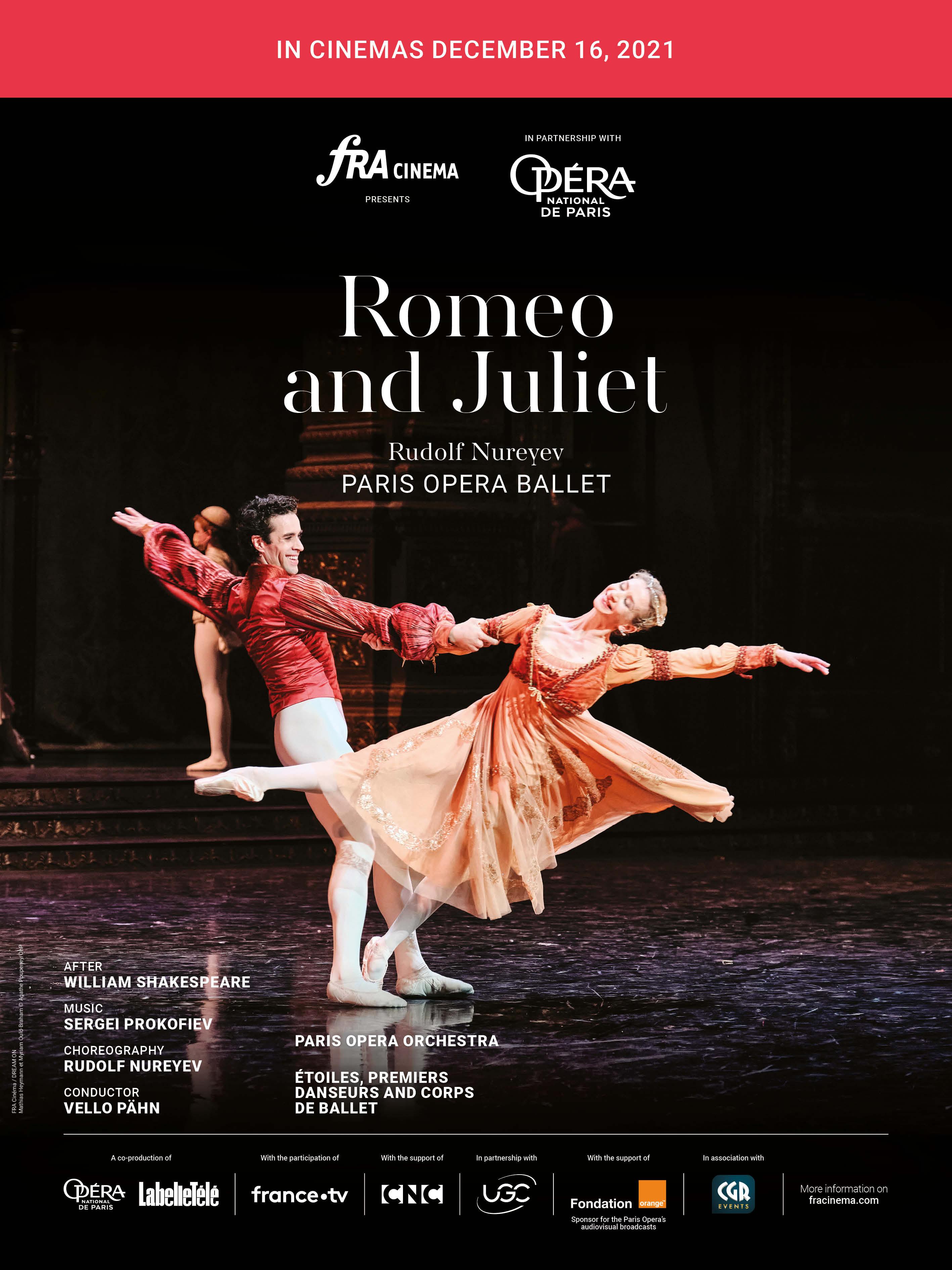 Splendor i przemoc, zadziorność i piękno mieszają się, na nowo rozpalając pasję dramatu Szekspira. Trzymając się skrupulatnie partytury, bardzo bliskiej sztuce, choreograf wyprodukował wersję Romea i Julii, w której „młody chłopiec staje się mężczyzną” u boku namiętnej Julii, która ledwie od dzieciństwa, również tragicznie wkracza w kobiecość. Ich miłości nie można otwarcie deklarować, ponieważ ich rodziny, Montagues i Capuleci, są uwięzione w rodzinnej walce… Zainspirowane włoskim renesansem, wspaniałe dekoracje i kostiumy autorstwa Ezio Frigerio i Mauro Pagano przenoszą nas do starannie odtworzonego Werona.