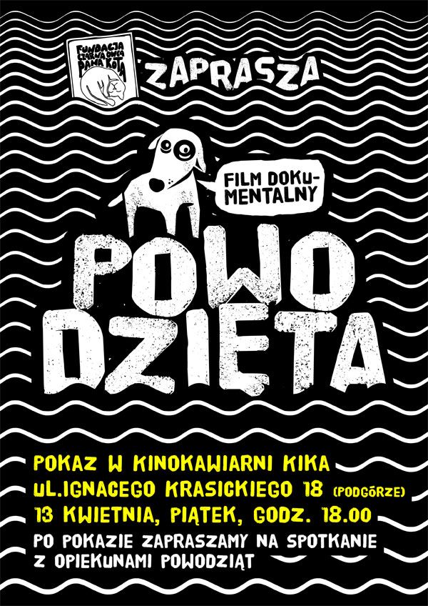 Film "Powodzięta" Zrealizowany przez Fundację Czarna Owca Pana Kota 45-minutowy film dokumentalny opowiada historię ewakuacji Schroniska dla Bezdomnych Zwierząt podczas powodzi w Krakowie w maju 2010 roku. Opowiada też historię 'prywatną' 15 zwierząt wziętych wtedy ze schroniska, które znalazły stały dom u wydawałoby się tymczasowych opiekunów. "Powodzięta" to obraz ludzi, którzy niejednokrotnie nie zamierzali zatrzymać zwierząt na stałe, ale poznawszy je nie mogli wyobrazić sobie zwrócenia ich do schroniska.