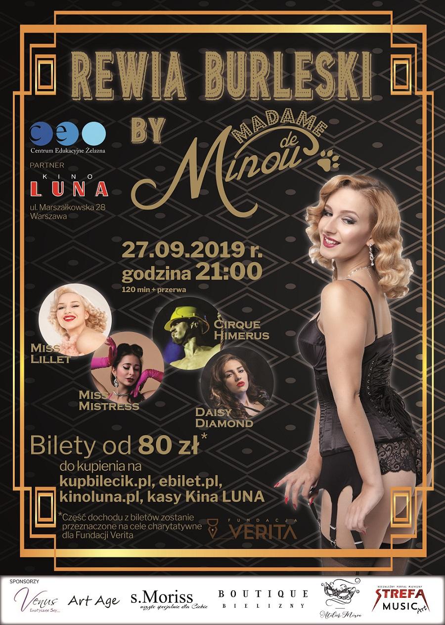 Już 27 września Kino Luna stworzy własne, warszawskie Moulin Rouge! Podczas rewii burleski by Madame de Minou piękne performerki będą kusić tańcem, cudowną grą aktorską i wyśmienitym poczuciem humoru, a znakomity artysta sztuki cyrkowej złamie niejedno damskie serce!