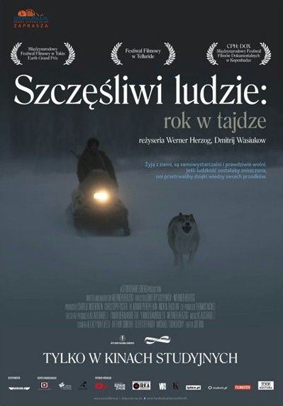 W samym sercu syberyjskiej głuszy, z dala od cywilizacji, 300 osób zamieszkuje małą miejscowości Bakhtia nad rzeką Jenisej – tak Werner Herzog, współautor i narrator filmu „Szczęśliwi ludzie: rok w tajdze”, rozpoczyna niezwykłą opowieść. Razem z filmowcami, którzy tam dotarli, obserwujemy rok z życia myśliwych, wędkarzy i innych osób zamieszkujących wioskę. Codzienność w przykrytym śniegiem niedostępnym regionie świata. Z pięknych kadrów filmu wyłania się obraz faktycznie szczęśliwych i spełnionych ludzi. Widać w nich także wielką miłość Dmitrija Wasiukowa, drugiego reżysera, do tajgi i jej mieszkańców. Malowniczym obrazom towarzyszy przepiękna, kontemplacyjna muzyka. Oni żyją z ziemi, są samowystarczalni i prawdziwie wolni. Nie ma podatków, nie ma rządu, nie ma prawa, nie ma biurokracji, nie ma telefonów, nie ma radia, mają za to własne wartości i normy postępowania. Jeśli cywilizacja ludzka zostałaby zniszczona, oni przetrwaliby dzięki wiedzy swoich przodków – twierdzi Herzog. Specjalna Nagroda Jury - MFF Tokio 2011
